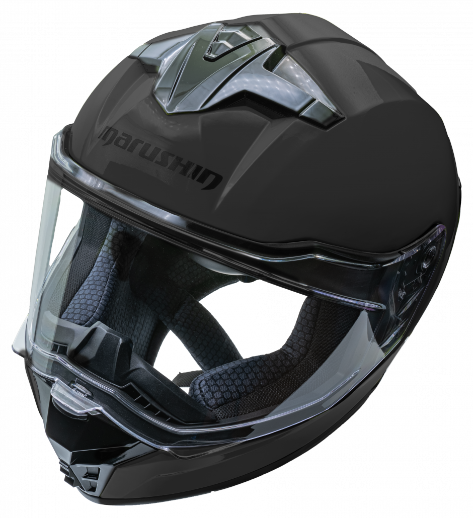 Ein neuer Marushin Fiberglashelm der extra Klasse. Sein Gewicht sorgt für eine neue Leichtigkeit. 1350 Gramm sind für einen ECE 22.06er Helm ein wirklich guter Wert. Sie können bei diesem sportlichen Helm ohne Sonnenblende zwischen einem klaren oder einem selbsttönendem Visier auswählen. Dieses Visier färbt sich je nach Sonnenlicht zwischen klar und getönt.